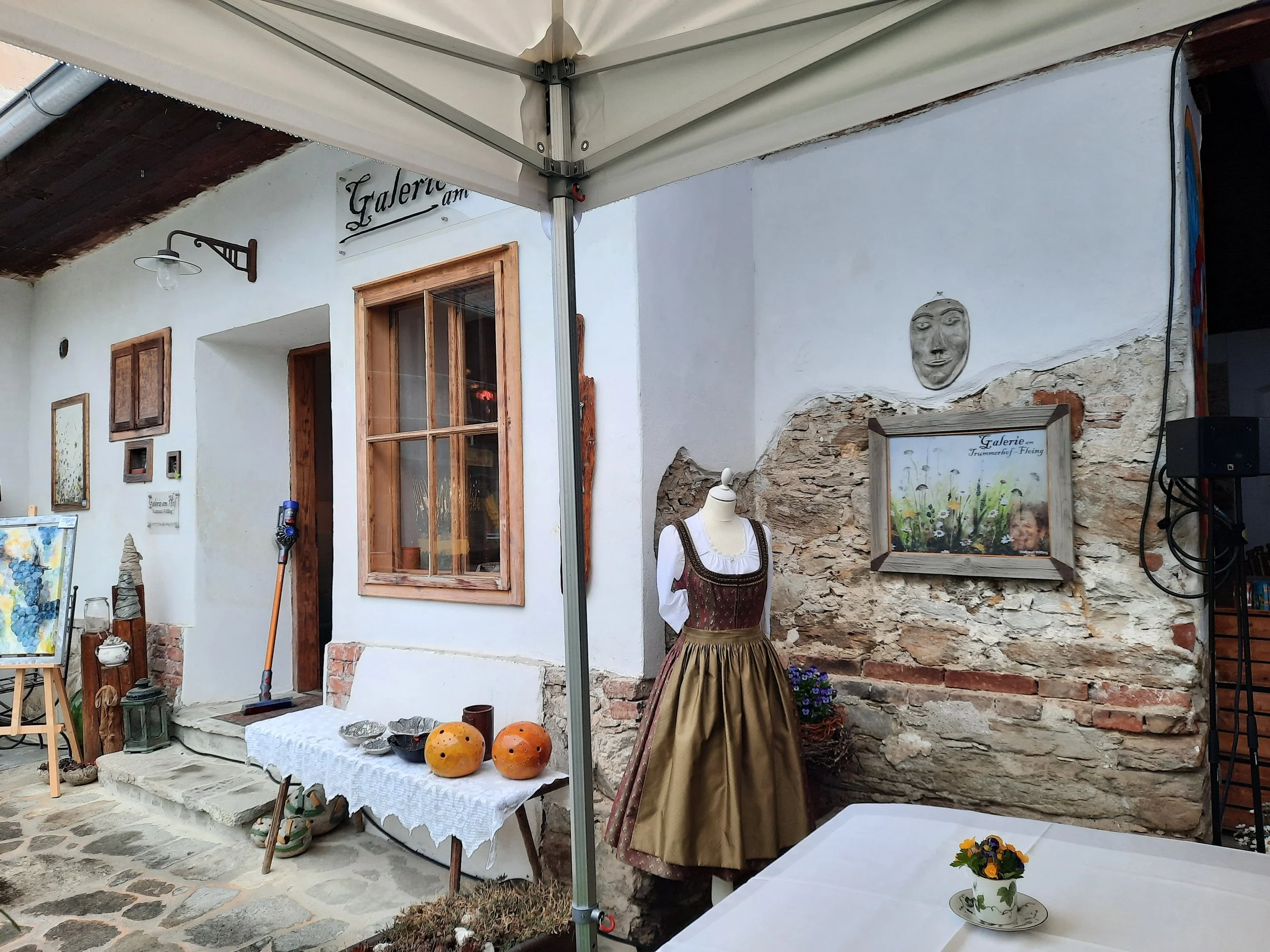 Und die virtuelle Spacemall-Tour von Waltrauds Werken auf einem Riesenbildschirm bot im Setting dieses historischen Hofes einen wunderbaren Kontrast und eine Verschmelzung von Alt und Neu.